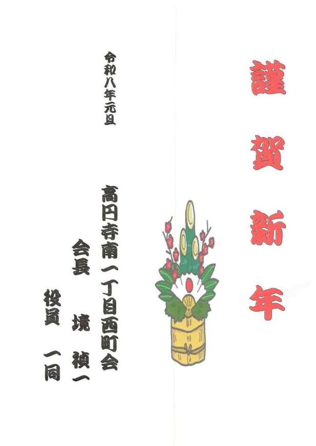 | 皆様には、お一人お一人が、健康で新しい年を迎えられますことを祈念申し上げます。 |