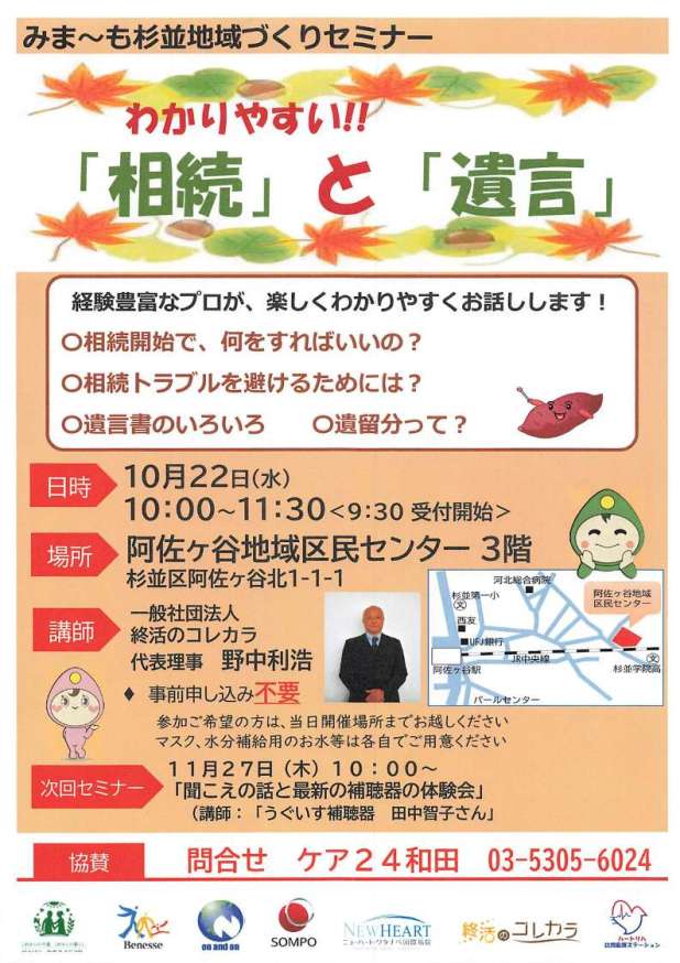 みま〜も杉並地域づくりセミナ−「相続」と「遺言」を掲載しました。 |
