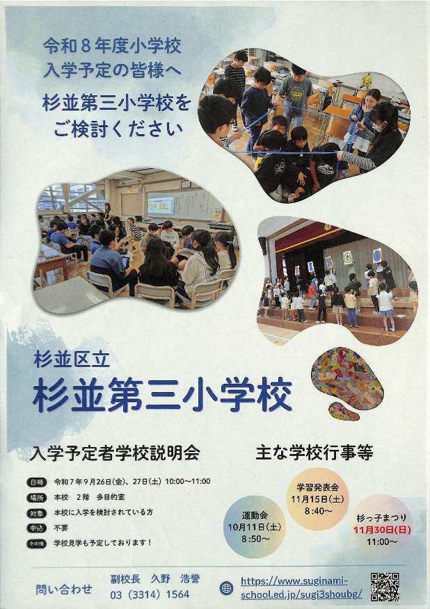 青柳いずみこ「ト−ク&コンサート」・区立杉並第三小学校「入学予定者説明会」を掲載しました。 |